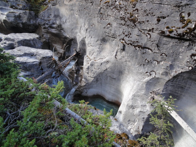 マリーン川の水が柔らかい石灰石を侵食して渓谷を作り出している。ものすごい水量、その迫力にびっくり。底までが深くてよく見えないほど侵食されている。