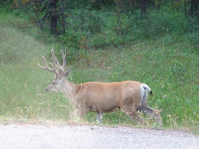 さっそく町中にエルクがいた。エルクは民家の庭まで入ってくるとか。それを防ぐために塀の上にさらにロープを張っている家もあった。