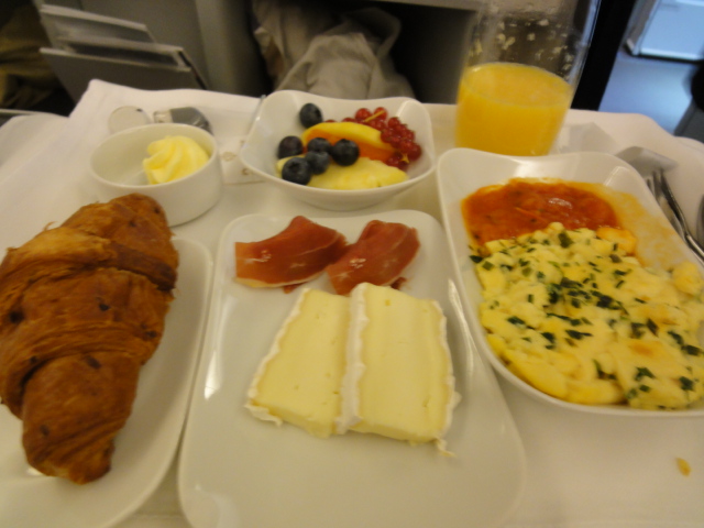 機内の朝食。