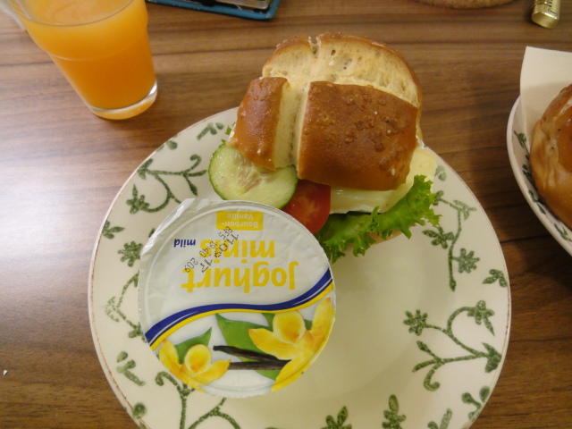 部屋に持って帰ってもいいというので、サンドイッチとヨーグルトとジュースを持って部屋でいただく。
