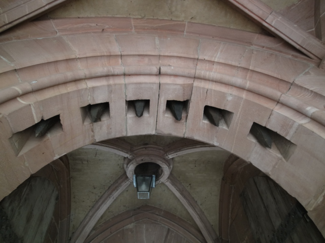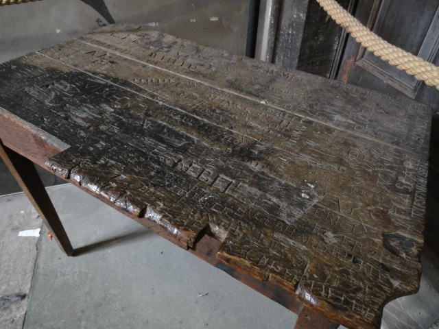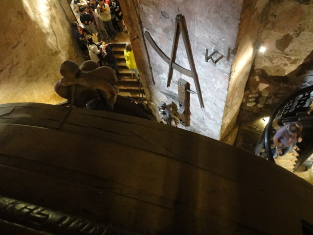 伝説ではお城が火事になって騎士が甲冑を着たまま窓から飛び降りたら窪んでしまった窪みが残っているらしい。本当かなぁ?