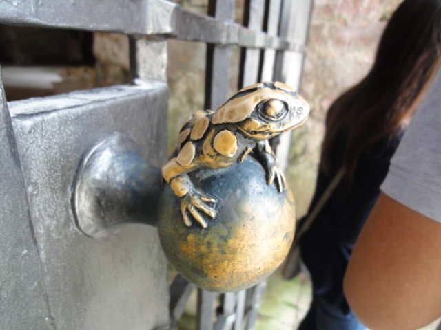 取っ手が…なんだろう、トカゲ?