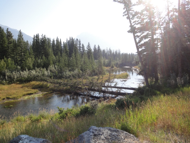 1時間程度歩くとボウ川に出た。どこから見てもよい景色だ。