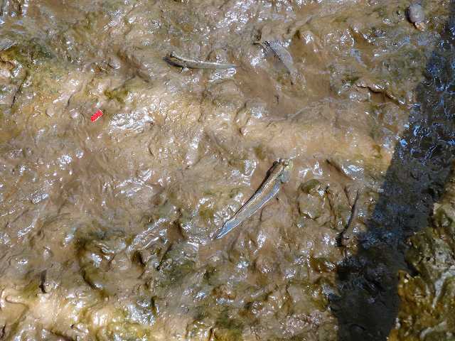 桟橋からムツゴロウを見る。たーくさん!