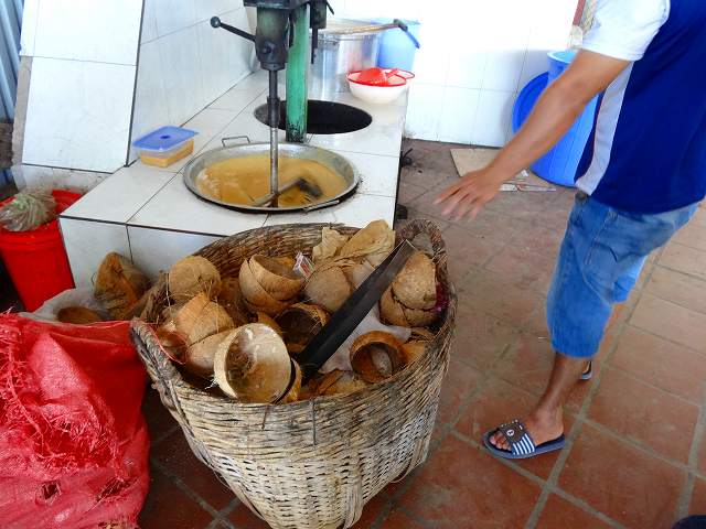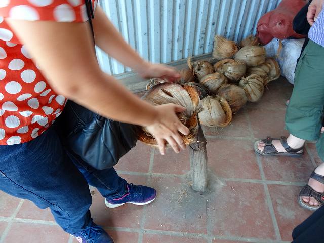 到着したところは、ココナッツの加工工場。工場というか、作業場?