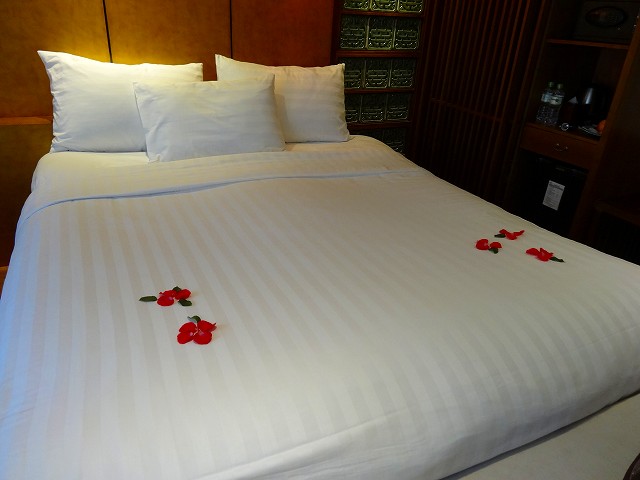 ベッドの上にバラの花