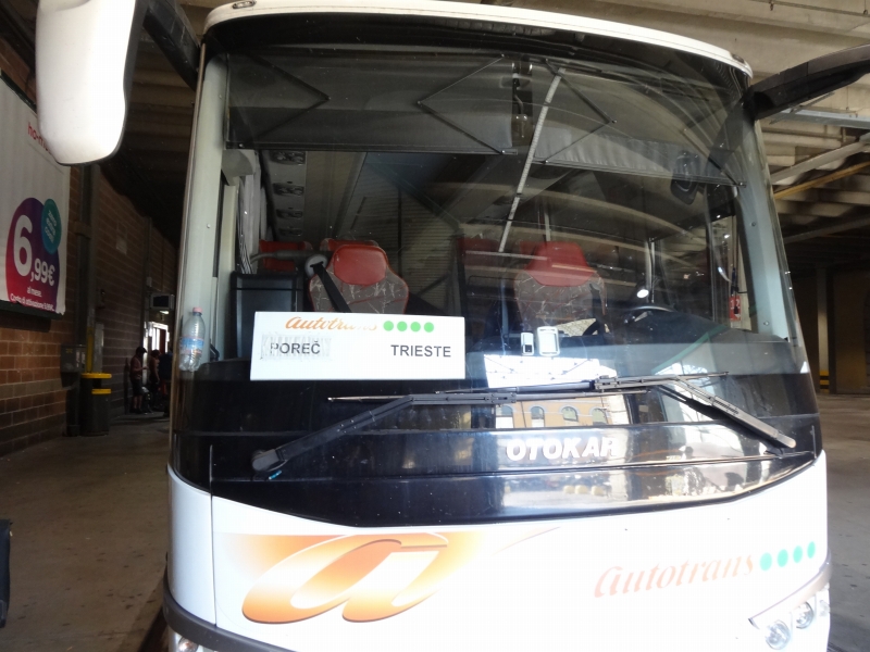 15分くらい遅れてバスが来た。ザグレブ発プーラ経由トリエステ行き?すごいな。何時間かかるんだろう。