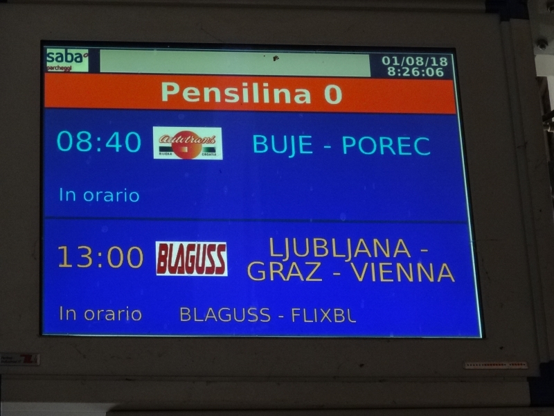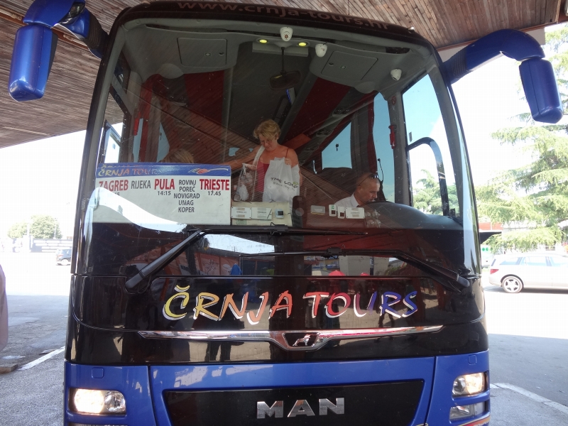 15分くらい遅れてバスが来た。ザグレブ発プーラ経由トリエステ行き?すごいな。何時間かかるんだろう。